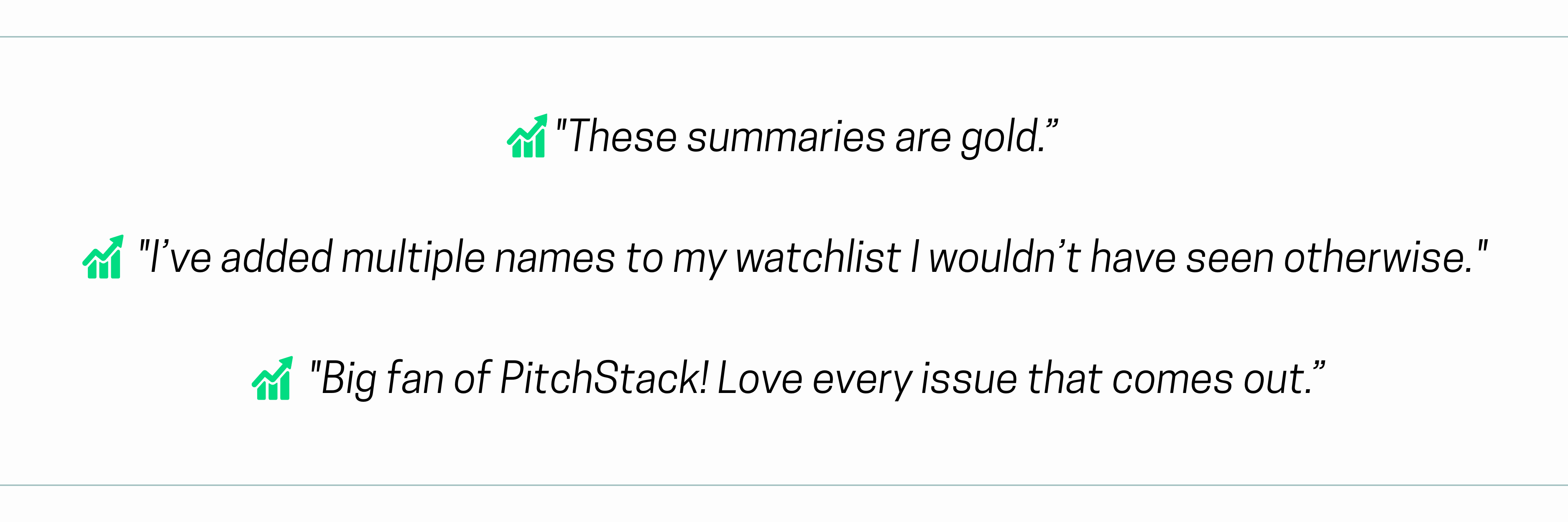 PitchStack is developing a suite of new tools and features designed to support your investment process, from discovery to deeper analysis. We can’t wait to roll them out to our community, so stay tuned! 🔥